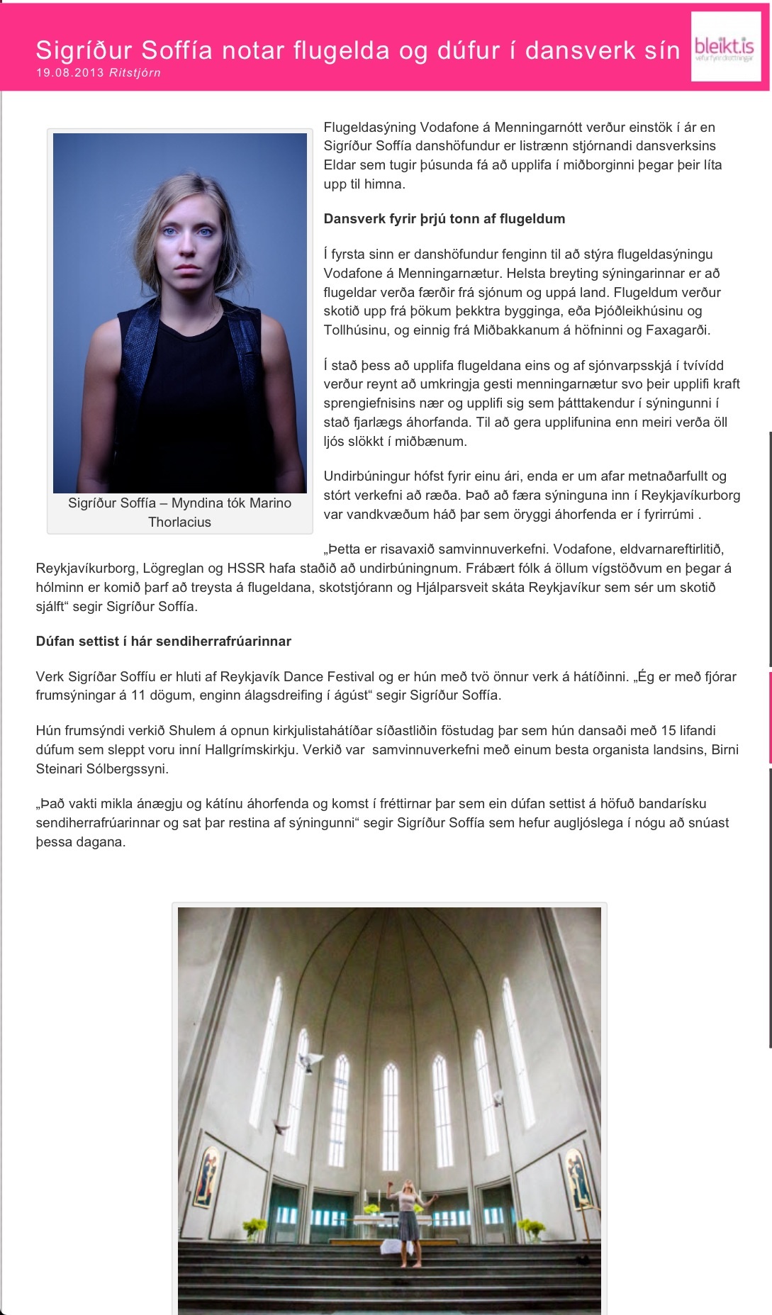 Bleikt.is | Sigríður Soffía notar flugelda og dúfur í dansverk sín.